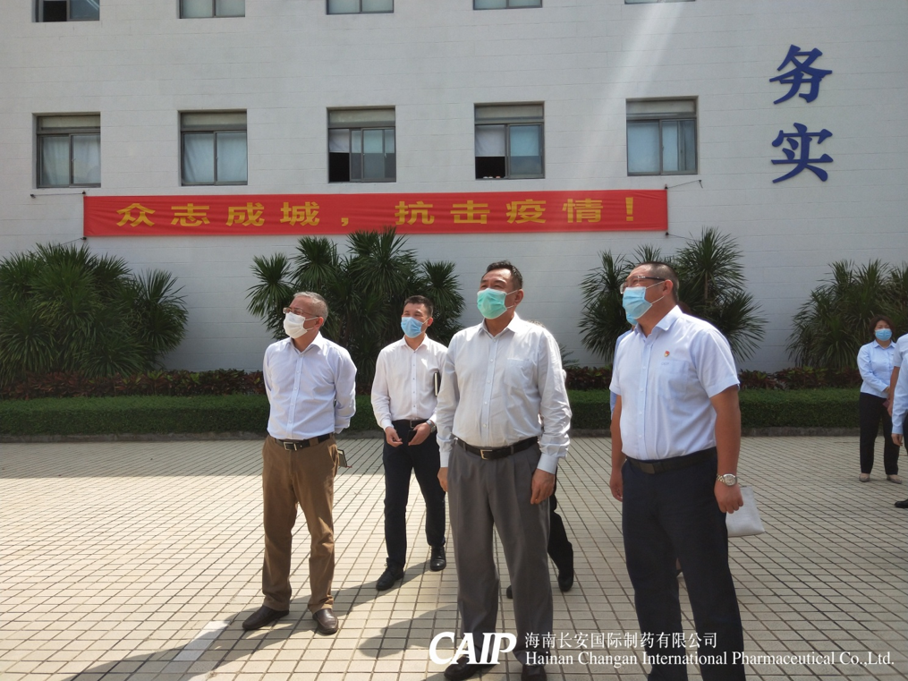 2020年3月2日上午,??谑芯侠诔?wù)副市長(zhǎng)等政府部門(mén)一行領(lǐng)導(dǎo),來(lái)到海南長(zhǎng)安國(guó)際制藥有限公司,就疫情防控期間重點(diǎn)企業(yè)復(fù)工復(fù)產(chǎn)及生產(chǎn)經(jīng)營(yíng)情況,進(jìn)行實(shí)地走訪調(diào)研。