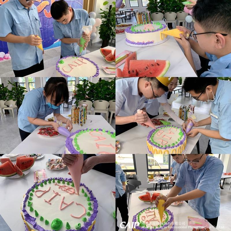 壽星們歡聚在一起,自己動手用心裝扮這份獨一無二的生日蛋糕。